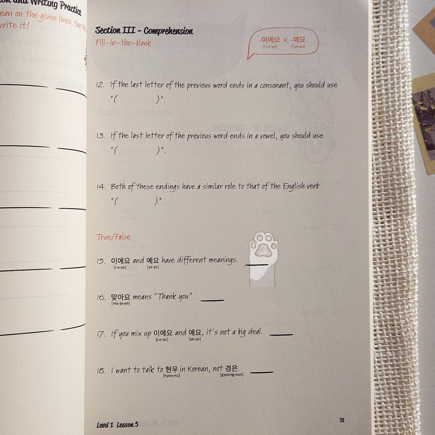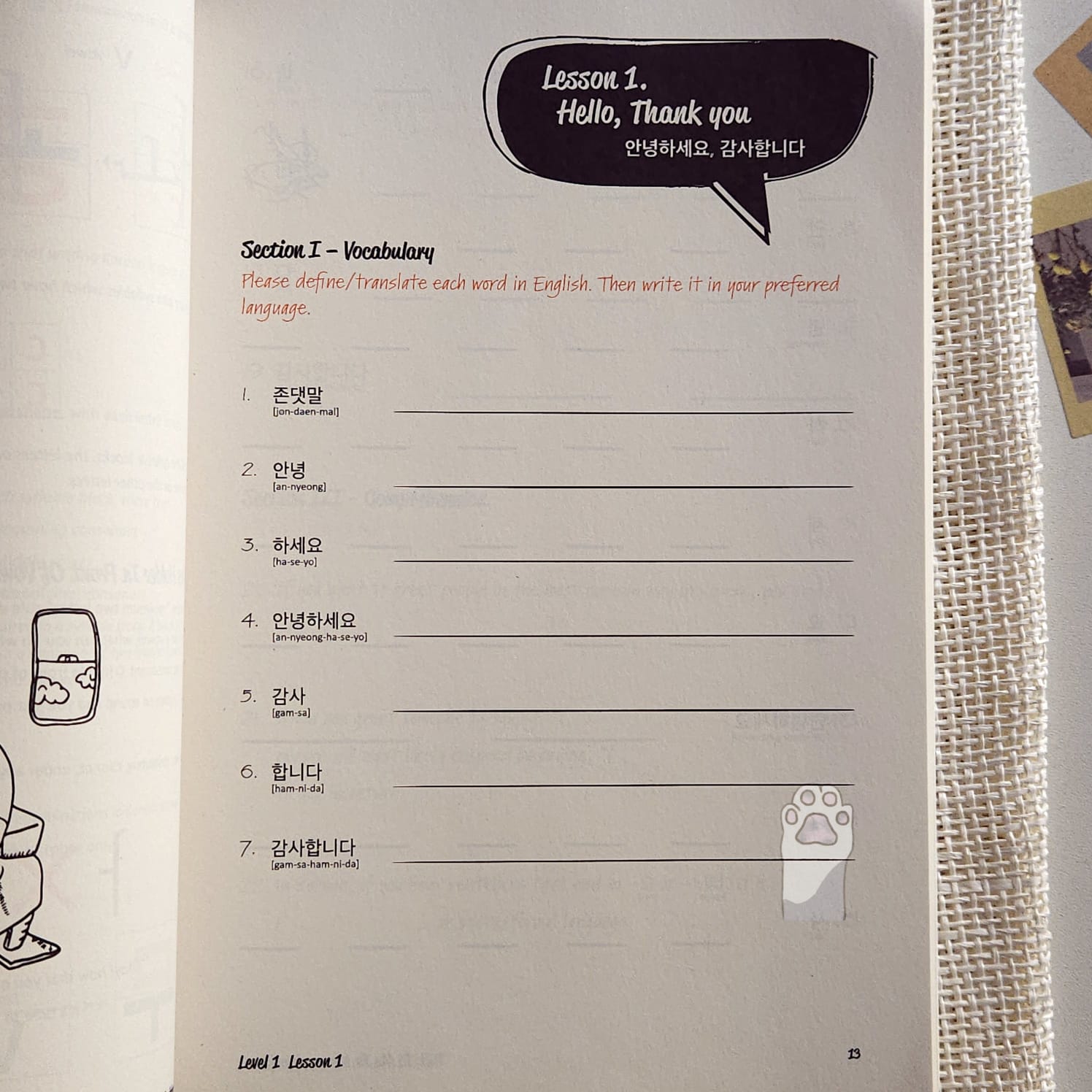يفترض الكتاب تعلمك للابجدية الكورية سابقا